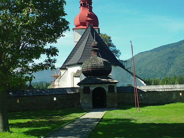 Pełen energii z namiotem i sakwami na rowerze ruszyłem około 9 godz.w drogę ze względu na ograniczoną długość dnia czas podróży wyznaczyłem sobie na około 8-9 godz. dziennie. Pierwszego dnia mój etap prowadził w stronę granicy a następnie miejscowościami Trstene , Vitanova, Oravice, Zuberec, Liptovsky Trnovec, Liptovsky Mikulasz, Liptovsky Hradok do pola biwakowego. Droga z Jabłonki do Oravic, którą wcześniej jeździłem jest względnie prosta i mało ruchliwa więc osobiście polecam, wśród pól uprawnych i lasów, dojeżdżamy do typowej miejscowości turystycznej jaką są Oravice w niej można zażyć kąpieli w ciepłych źródłach gdzie jak mówi informacja woda jest wydobywana z głębokości 1600 m. Tutaj podziwiamy szczyt Osobistej możemy w celach zdrowotnych wjechać w Dolinę Bobrowiecką ( trasa rowerowa około 4 km.) gdzie można zaczerpnąć wodę zdrojową tryskającą ze skały . Dalsza jazda wymaga lekkiego wysiłku podjazd ma około 4 km. i 12% nachylenia ( to dobry trening na dalsze górki ) po przejechaniu wzniesienia, rower jedzie sam bez pedałowania do samego Zuberca. Mam czas na upajaniu się widokami łąk i lasów jaki mijam po drodze. Zuberec to miejscowość z której wielu turystów wypuszcza się w Tatry Zachodnie moja trasa prowadzi w stronę Liptovskiego Mikulasza. To najtrudniejszy podjazd na trasie jedynym pocieszeniem to minimalny ruch samochodowy i piękne widoki ( droga alternatywna do Hut i doliną Kvacianską ) po wjechaniu na 1100 m. droga daje komfortu lekkiego zjazdu jednak należy czuwać nieustannie nad zjazdem gdzie są serpentyny i zbyt szybki zjazd można zakończyć się wywrotką ( obciążenie bagażnika zmusza do częstego używania hamulca ) Jazda rowerem do samego Mikulasza jest naprawdę przyjemna, rynek w mieście jest odnowiony i warto jest na moment odpocząć. Odcinek z Mikulasza do Liptovskiego Hradoka jest uciążliwy ze względu na duży ruch samochodowy wynagrodzeniem był dla mnie był odpoczynek na ławce przy stawie obok zamku, ryby w stawie mają około 1 metra długości. Ciągłe uwieczniania, drogi aparatem fotograficznym opóźniło moją podróż. W końcu musiałem nacisnąć na pedała aby dotrzeć do noclegu. Równy odcinek na przedpolu Tatr Zachodnich