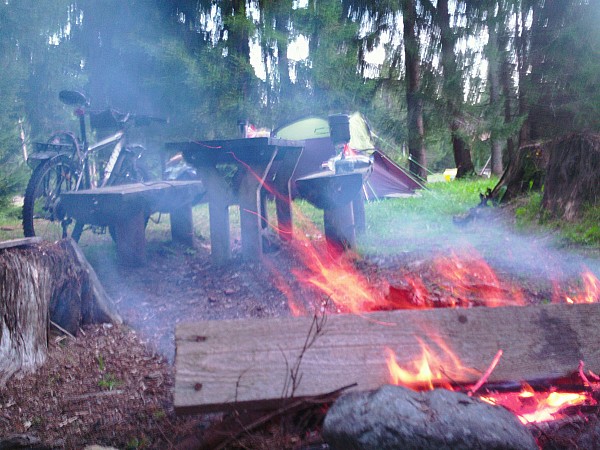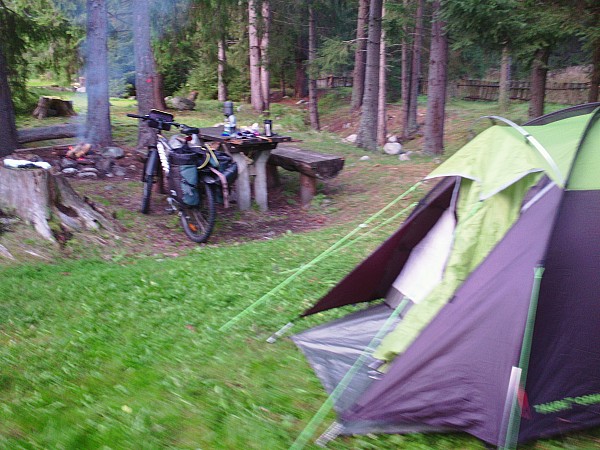 z jego szczytami, zauroczy każdego w Pribylinie obok muzeum Diediny Orawskiej zostałem poinformowany, że pole biwakowe czynne było do 15 września, nie słuchając złych informacji chciałem to sprawdzić osobiście. Po dojechaniu na miejsce stwierdziłem że brama była otwarta, chociaż w recepcji i na terenie całego obiektu nie było nikogo. Nie zważając na pustkę rozłożyłem namiot i rozpaliłem ognisko ( miejsca pod ogniska były przygotowane wraz z chrustem ) znalazłem kran z wodą i ku memu największemu zdziwieniu toalety i prysznice z ciepłą wodą były czynne . Po pewnym czasie zauważyłem dwie osoby które też przebywały na terenie tylko w domkach kempingowych od nich dowiedziałem się ze obiekt jest zamknięty lecz na godzinę przyjeżdża tutaj właściciel i udostępnia w nagłych wypadkach noclegi. Miejsce pod namiot w tych warunkach nic mnie nie kosztował.