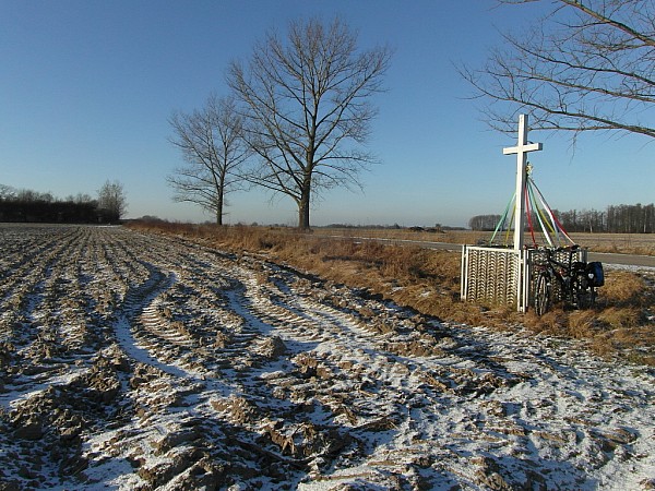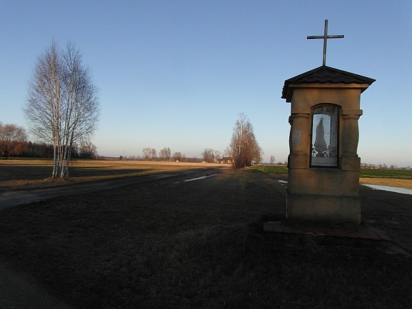 Moim docelowym miejscem jest stacja kolejowa w Tłuszczu. Podążam tam lokalnymi asfaltami.Co jakiś czas przystaję pod polnymi kapliczkami rozgrzewając się gorącą herbatą.