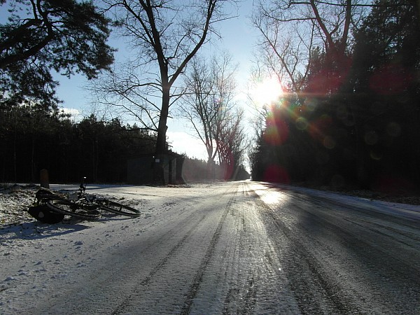 Ponownie jestem na szosie, która to jest pokryta cieniutką warstwą lodu.
