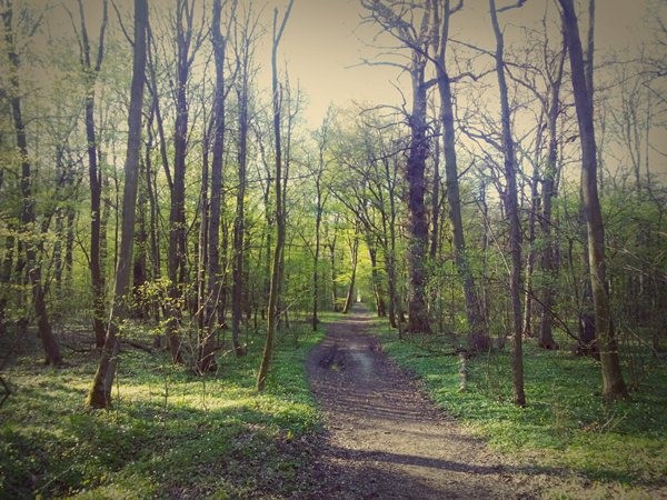 Wracając na drogi utwardzone szybko staramy przebić się przez osiedle w kierunku Lasu Wojnowskiego. Osiedle okalamy cichą ulicą Rolniczą. Następnie skręcając w lewo w ulicę Narciarską dojedziemy do ww. lasku. A w nim piękna zieleń, stokrotki w runie leśnym i śpiew piękny śpiew ptaków tak blisko Wrocławskiego centrum. Ścieżka przez środek lasu w blasku popołudniowego słońca wygląda przepięknie. Wyjeżdżamy z lasu od strony północnej i od razu spotykamy stado dwudziestu saren, które żerowało na polu z prawej strony. Niewielkim nasypem (dosyć wyboistym) docieramy do ul. Wilczyckiej aby zmierzać w kierunku centrum. Po drodze zwiedzamy tereny nowo budowanego osiedla przy ul. Chałupniczej.