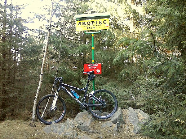 Na rozpoczęcie wycieczki wybrałem Wojcieszów skąd kierujemy się na najwyższy szczyt Gór Kaczawskich Skopiec. Na początku jedziemy żółtym szlakiem pieszym do Przełęczy Komarnickiej, a na niej zmieniamy szlak na niebieski pieszy i nim jedziemy prawie już na sam szczyt. Na sam szczyt prowadzi nieoznakowana ścieżka, ale nie ma problemu z jej znalezieniem. Sam Skopiec nie jest za ciekawym szczytem, ponieważ jest cały zarośnięty i nic z niego nie widać, ale zawsze warto zaliczyć najwyższy szczyt pasma górskiego.