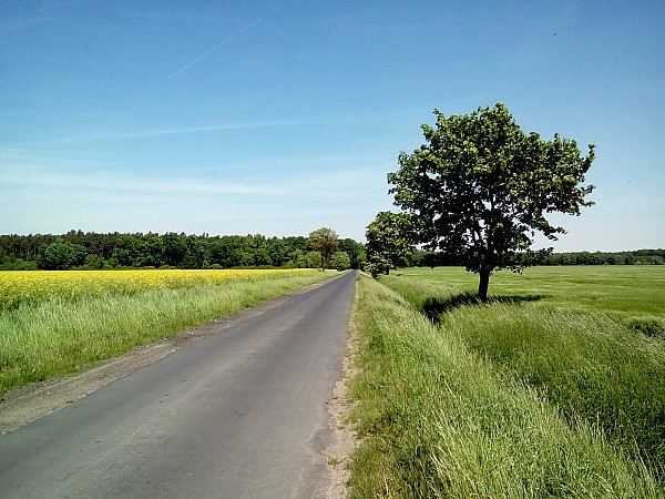 Trasa zaplanowana na podstawie map i dostępnych informacji w zamierzeniu miała przebiegać po asfalcie i wszystko było jak należy aż do miejscowości Sułków to tu zaczęła się droga z kostki, dla roweru o sztywnym widelcu - masakra, można się nabawić choroby wibracyjnej a na poboczu piasek, dla opon 700x32 nie do jazdy. Jakoś przebrnąłem ten odcinek, który kończył się w Zaborowie. Tu wstąpiła we mnie nadzieja wraz z zaczynającym się asfaltem. Dalej trasa miała przebiegać przez Czechnów w kierunku Rudnej Wielkiej i dalej już znaną mi trasą na Załęcze. Niestety skręt w prawo 50 metrów i ...kocie łby! No trudno, tak nie pojadę. Alternatywa, Bojanowo i dalej dawną "piątką" do Rawicza. Traumatyczne przeżycie! Samochody pędzą ze 140 mijając rowerzystów o pół metra, dla mnie to zbyt ekstremalny sport, tej trasy więcej nie tknę :)