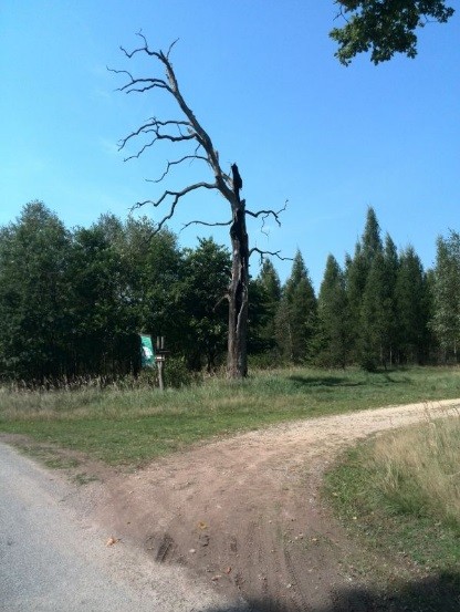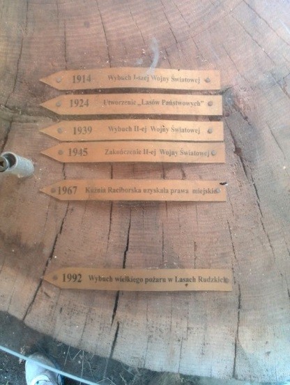 Wyruszamy z parkingu koło stadionu. Jedziemy drogą BARACHOWSKA cały czas prosto asfaltem. Podziwiamy pięknie odbudowany las po pożarze w 1992 roku. (0, 0a, 0b, 0c) Przejeżdżamy przez przejazd kolejowy. (0d) Mijamy wieżę obserwacyjną. (1, 1a) Na skrzyżowaniu skręcamy w prawo. (2) Droga lekko w dół prowadzi w stronę Rud. W połowie tego szlaku można odpocząć na ławeczce nad zbiornikiem wodnym. Na kolejnym miejscu postoju możemy poczuć troszkę historii dzięki dużemu pniu drzewa na którym zaznaczone jest kilka faktów z historii Polski i samej Kuźni.(3, 4, 5, 6) Dojeżdżamy do skrzyżowania i skręcamy mocno w prawo. (7) Jedziemy cały czas główną drogą asfaltową. Mijamy kolejny raz tory kolejowe i dalej prosto. Wjeżdżamy na teren pożarzyska. (8, 9) Po około 7 km dojeżdżamy do drogi BARACHOWSKIEJ. (Można skręcić jeszcze raz w prawo i zrobić kolejne kółko. Gwarantuje, że podczas kolejnego kółka zobaczycie lub spotkacie kogoś nowego). Skręcamy w lewo. Drogą asfaltowa jedziemy aż do stadionu w Kuźni.