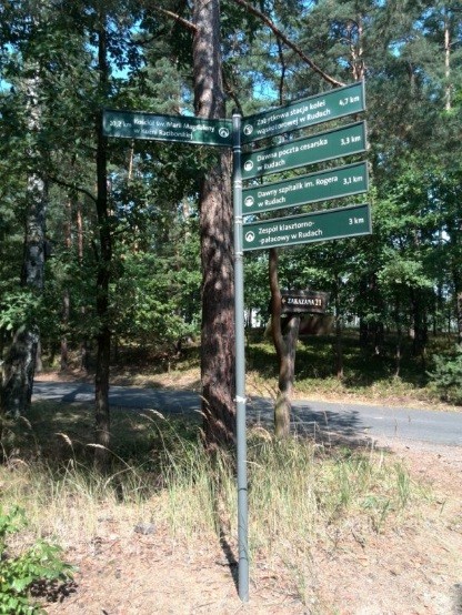 Wyruszamy z parkingu koło stadionu. Jedziemy drogą BARACHOWSKA prosto asfaltem. Na skrzyżowaniu z drogą SZARĄ skręcamy w prawo, zjeżdżamy z asfaltu. Szlak prowadzi lekko w prawo i dół. Na skrzyżowaniu skręcamy w lewo – NA CZARNE ŚWIERKI. Teraz przemieszczamy się głównym szlakiem przed siebie aż do boiska w Rudach Kozielskich. Na rozwidleniu dróg w prawo i lewo wybieramy lewo, a na kolejnym jedziemy w prawo. Pojawiają się pierwsze oznaki cywilizacji. Droga leśna zamienia się w asfaltową. Wyjeżdżamy na Brantolce w Rudach. W prawo droga prowadzi do centrum. W lewo jedziemy w stronę lasu. Droga prowadzi prosto przez tory. Dojeżdżamy do krzyżówki ze znakiem KUŹNIA RACIBORSKA. (1) Skręcamy w lewo, lekko w dół i jedziemy cały czas główną drogą asfaltową. Mijamy kolejny raz tory kolejowe i dalej prosto. Wjeżdżamy na teren pożarzyska. (2, 3, 4, 5) Po około 7 km dojeżdżamy do drogi BARACHOWSKIEJ. Skręcamy w lewo. Drogą asfaltowa jedziemy aż do stadionu w Kuźni.
