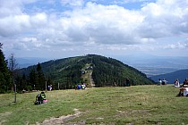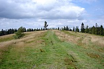 Po osiągnięciu szczytu kierujemy się na Klimczok. Na początku jedziemy czerwonym szlakiem pieszym do żółtego pieszego. Wjeżdżamy na niego prawie zawracając i zaraz znowu zaczyna się mocniejszy podjazd ze zmorą Beskidów. Czyli luźne kamienie :( Ale tutaj już aż tak stromo nie ma i na spoko można podjechać na szczyt Klimczoka.