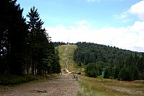Startujemy ze Szczyrku i kierujemy sie na Magurę. Na początku jedziemy asfaltowymi uliczkami, ale już na nich lipy nie ma. Droga mocno pnie się w górę. Po dojeździe do ażurowych betonowych płyt jest jeszcze więcej stromo. Kiedy dojedziemy do szutrówki mamy chwilę wytchnienia. Później zaczyna się znowu dość stromy krótki podjazd, a za nim już na spokojnie podjeżdżamy prawie do samego szczytu. Na końcówce czeka nas jeszcze krótki dość stromy odcinek z dość dużą ilością luźnych kamieni. Tu raz się uda podjechać, a raz nie. Ale nie ma czym się przejmować jak spadnie my z siodła to możemy kawałek ponosić sobie rower.