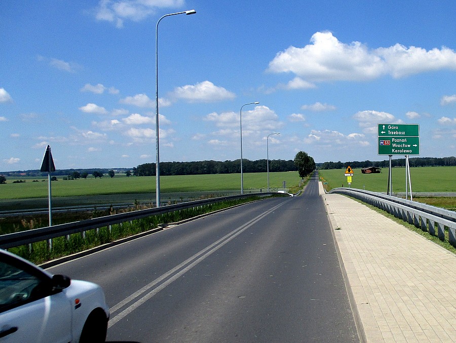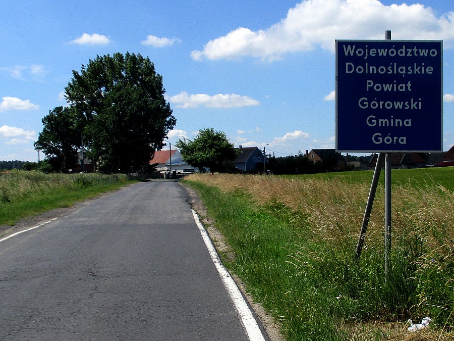 W Sowinach skręt na lewo na Bojanowo, w którym z drogi widać browar należący do posła w fularze. Po przejechaniu wiaduktu nad S5 kierujemy się na Górę. Po drodze, za Zaborowicami a tuż przed granicą województw, widać drewniany, poniemiecki i poewangelicki kościół p.w. NMP. w Giżynie. Granica województw jest wyraźnie widoczna, nie tylko dzięki tablicy informacyjnej ale i sama droga wyraźnie nas o tym informuje. Gładka szosa z wymalowanymi pasami środkowymi i bocznymi zmienia się w wyboisty asfalt o erodującej linii pobocza bez oznaczeń poziomych.