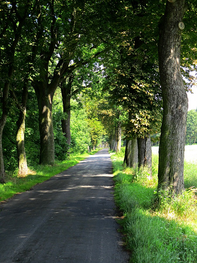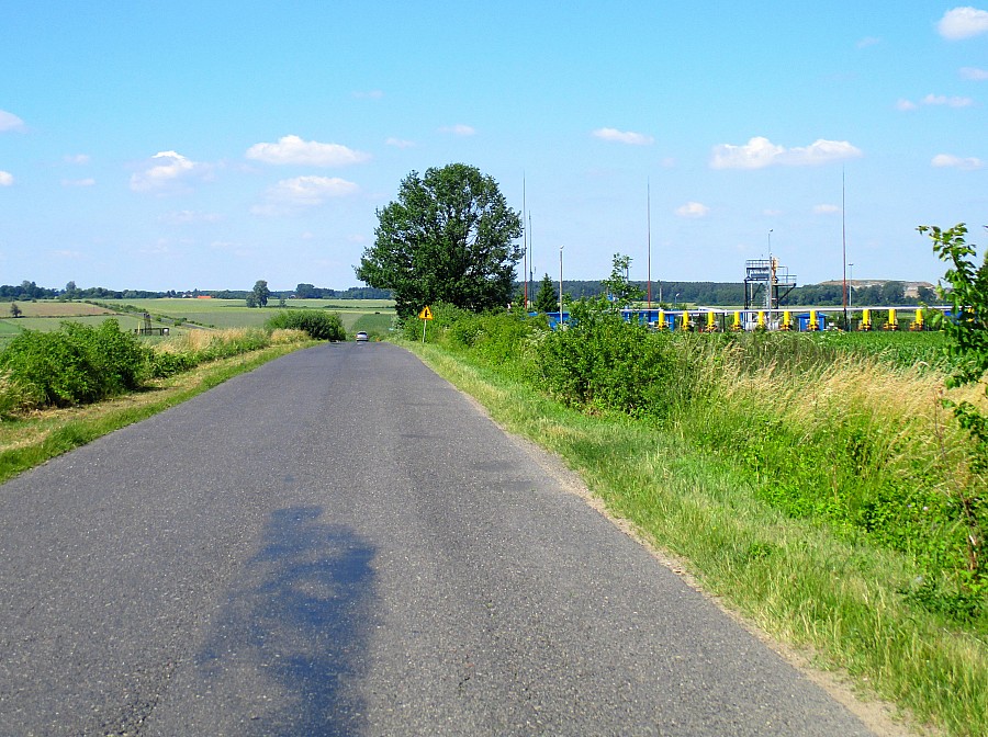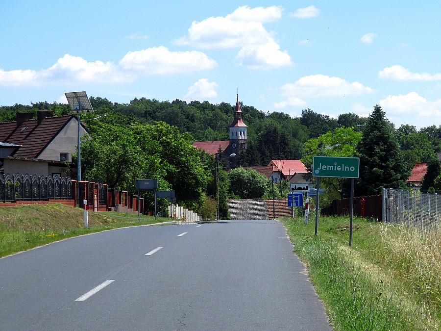 Dojeżdżamy do Góry. Trzeba przebić się przez miasto w kierunku Starej Góry. Polecam wariant trasy widoczny na mapce. Za Starą Górą kierujemy się na Ryczeń zachowując na rozjeździe szczególną ostrożność bo przecinamy trasę z pierszeństwem. W Ryczeniu dość stromy zjazd i lądujemy na moście nad Baryczą, za którym rozpoczyna się leśny odcinek trasy z jedną z najdłuższych prostych jaką zdarzyło mi sie jechać, całkowicie prosty kawałek ma dwie mile (3240 m). Las kończy się na rozjeździe gdzie w lewo skręcamy na Jemielno.