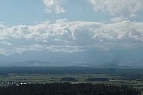 Szlak biegnie wśród pagórkowatych terenów z panoramom Tatr i Babiej Góry .