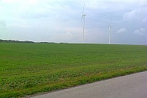 Ostatnio wiatraki stały polu rzepakowym czyli żółtym a dzisiaj jakieś zielsko rośnie czyli na zielonym :). A tak na marginesie to farma wiatrowa znajduje się w okolicach Pakosławia :)