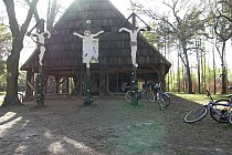 Jedziemy drogą BARACHOWSKA cały czas prosto asfaltem. Podziwiamy pięknie odbudowany las po pożarze w 1992 roku. Przejeżdżamy przez przejazd kolejowy. Mijamy wieżę obserwacyjną. (1) Na skrzyżowaniu skręcamy w lewo. (2) Kończy się asfalt, jedziemy cały czas prosto po ubitych kamieniach. Mijamy ławkę zakochanych. (3) Na kolejnym skrzyżowaniu skręcamy w prawo. Dotarliśmy do celu.